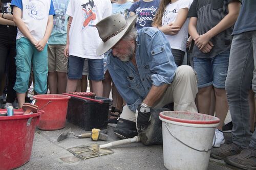 Verlegung von Gedenktafeln für Menschen, die durch den Nationalsozialismus ermordet wurden.