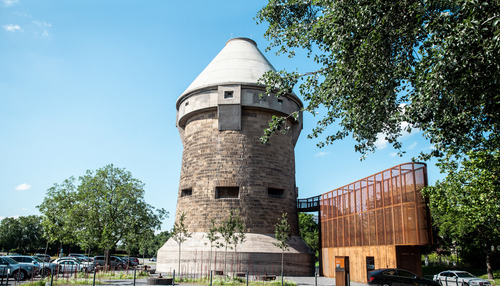 An der Theresienwiese steht seit 1940 ein Luftverteidigungsturm, der in den letzten Monaten des Zweiten Weltkrieges für viele zur Zuflucht wurde. Nach Kriegsende bot der Turm Schlafstellen für Menschen auf der Flucht oder Durchreise. Eine Führung durch den Turm führt in diese Zeit zurück.