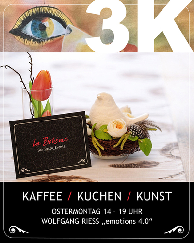 Der Maler Wolfgang Riess zeigt neue Werke „emotions 4.0“. Willkommen zu Kaffee, ausgemachtem Kuchen und Kunst am Nachmittag von 14 bis 19 Uhr.
